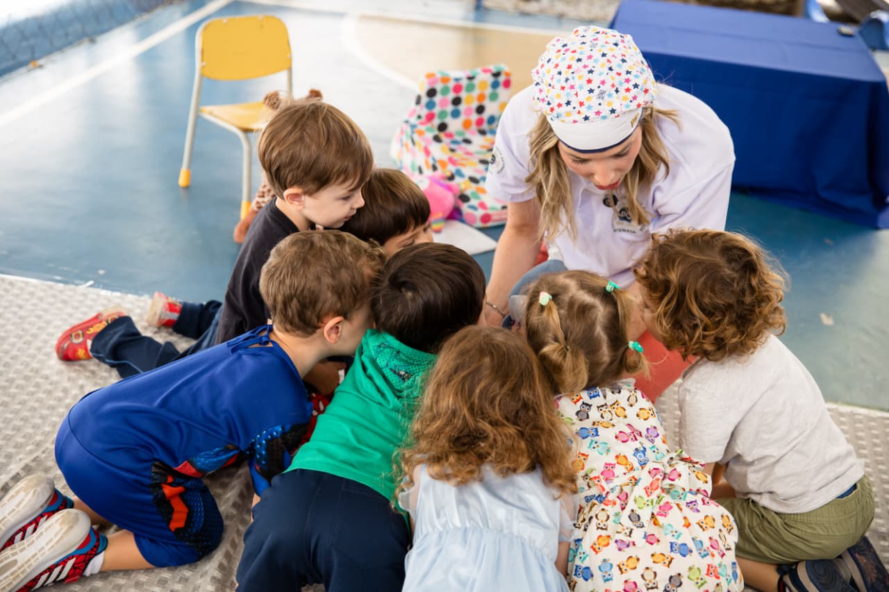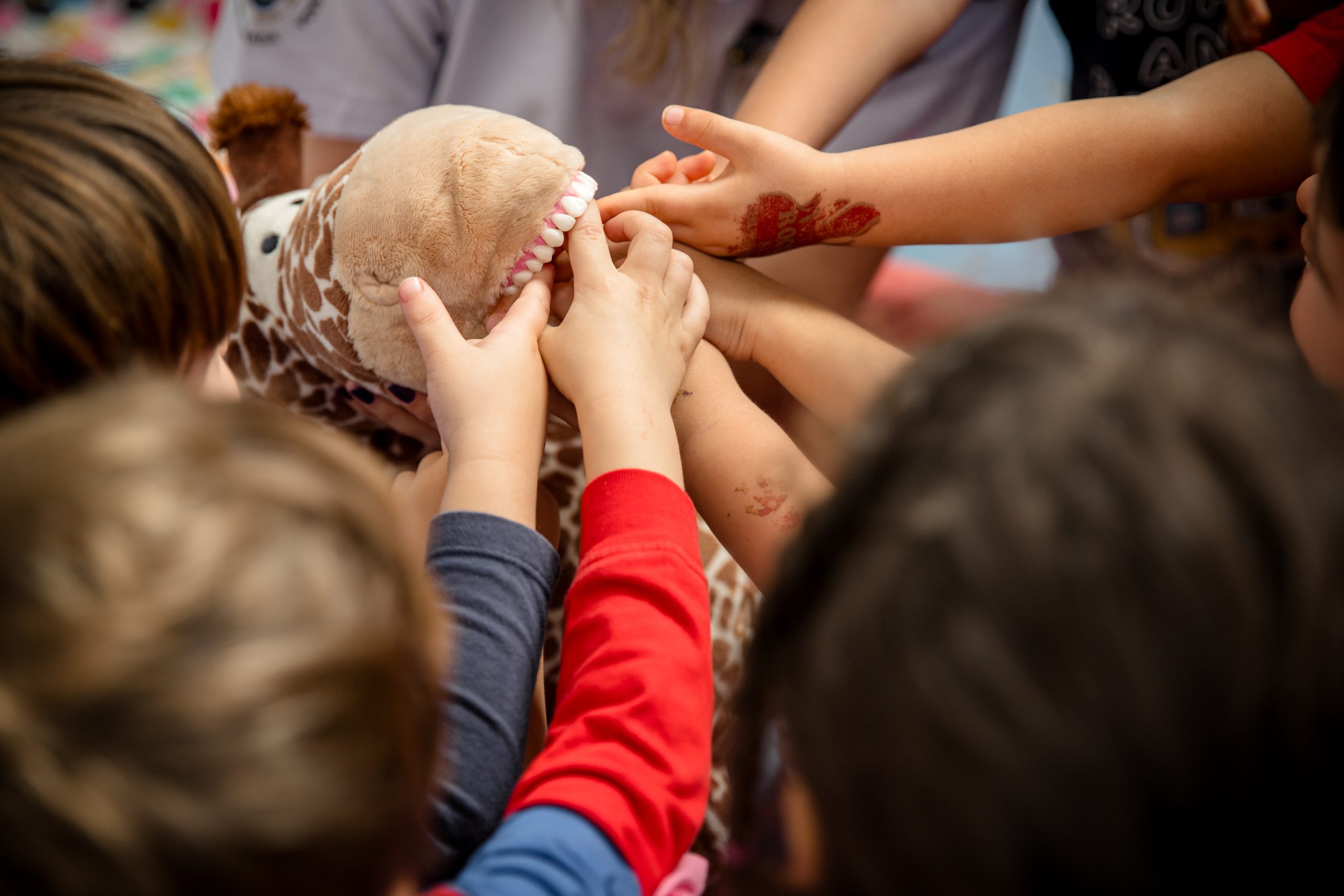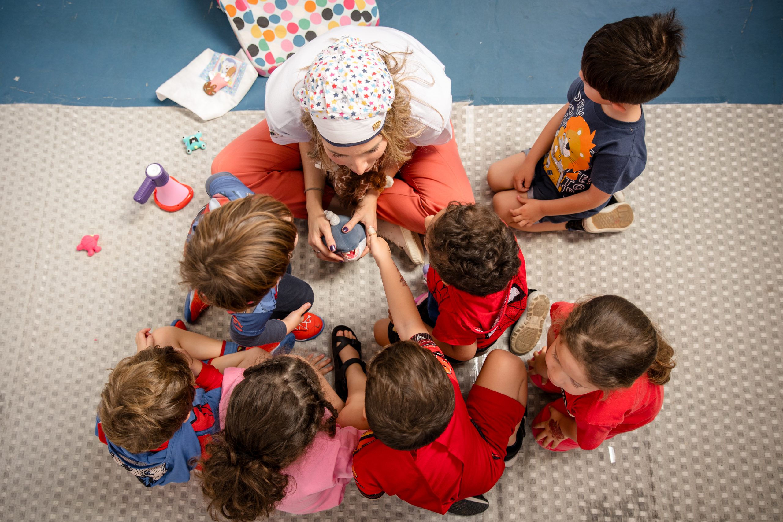"Além de explicar de forma lúdico e divertida sobre saúde, converso com toque e acolhimento com os professores e colaboradores. Até porque se queremos gerações saudáveis precisamos comunicar com a base.